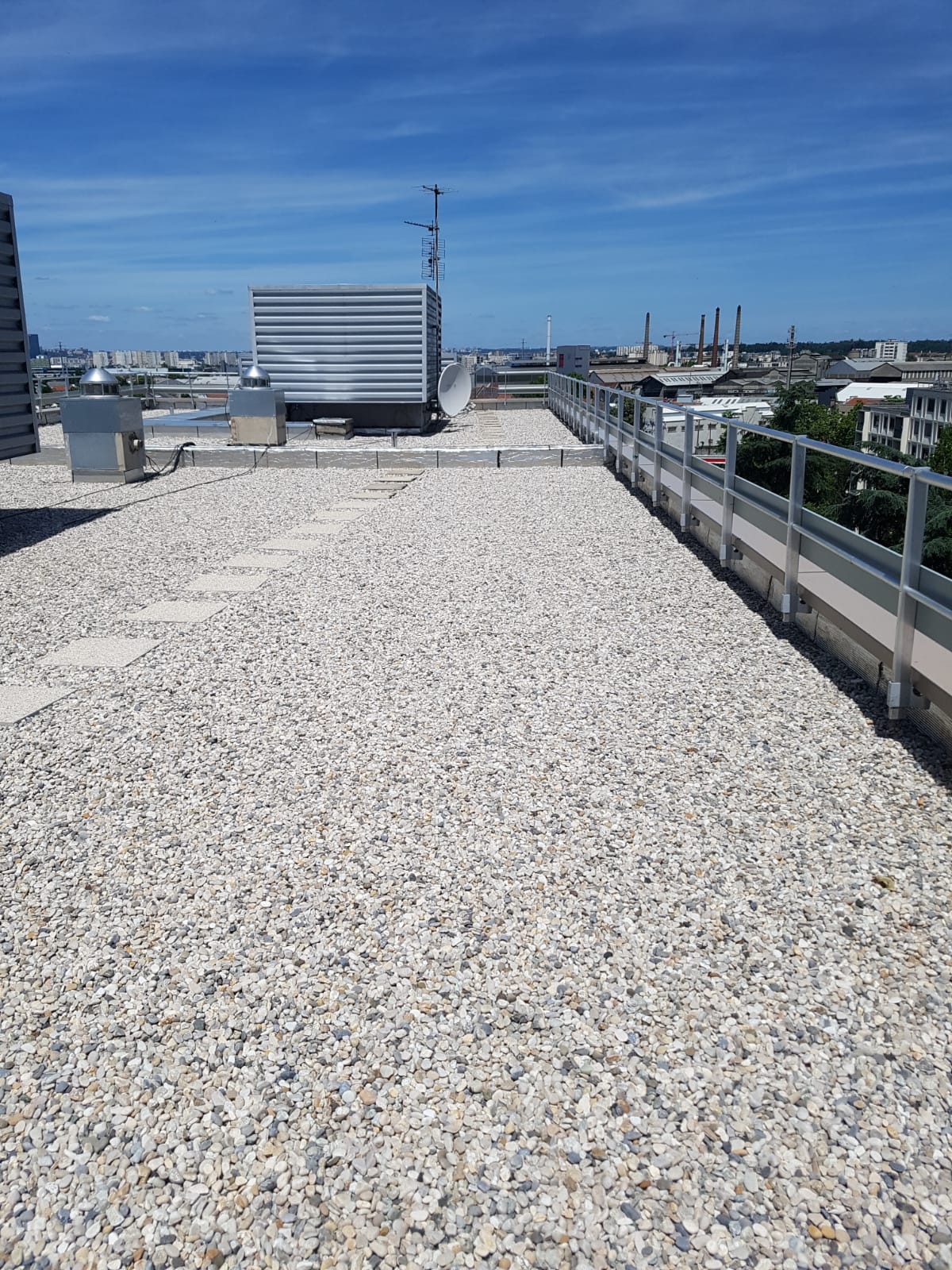 Nous intervenons sur tous types de supports et de configurations : toiture végétalisée, toiture gravier, dalles sur plots, platelage bois, toiture autoprotégée, bac étanché, bac sec et toiture photovoltaïque.